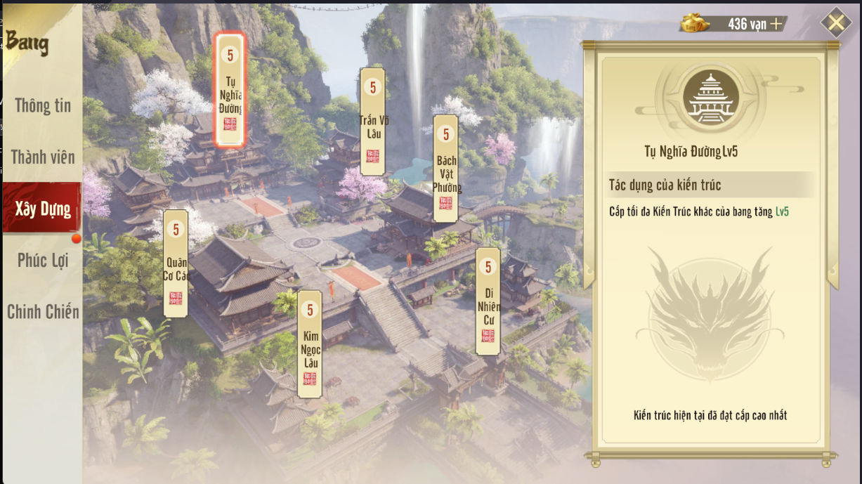 Tụ nghĩa đường: Giúp tăng cấp các kiến trúc khác trong bang.